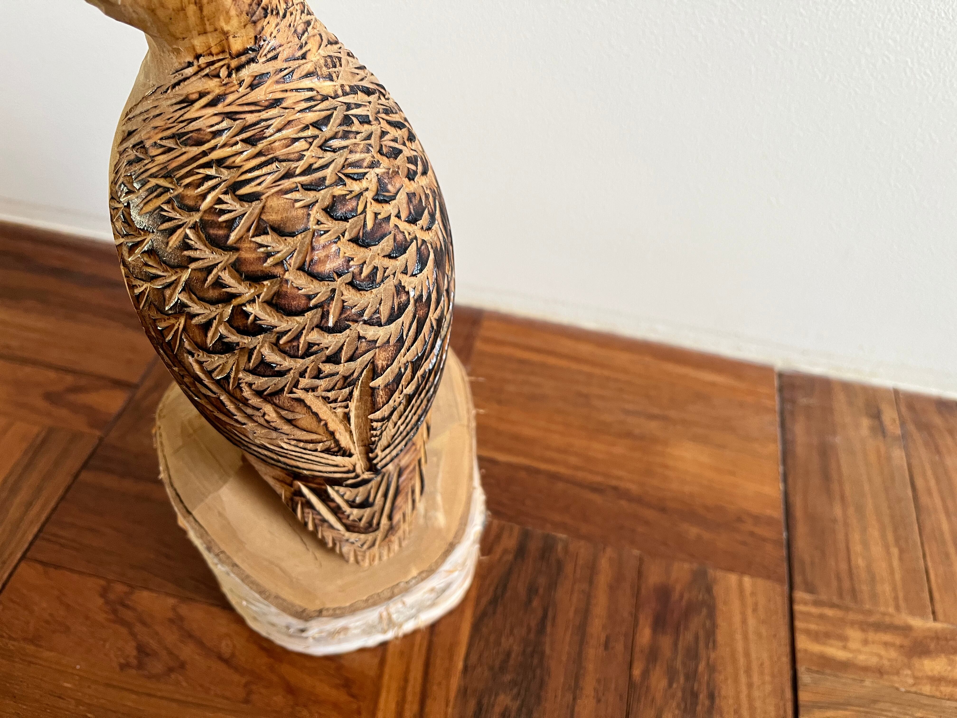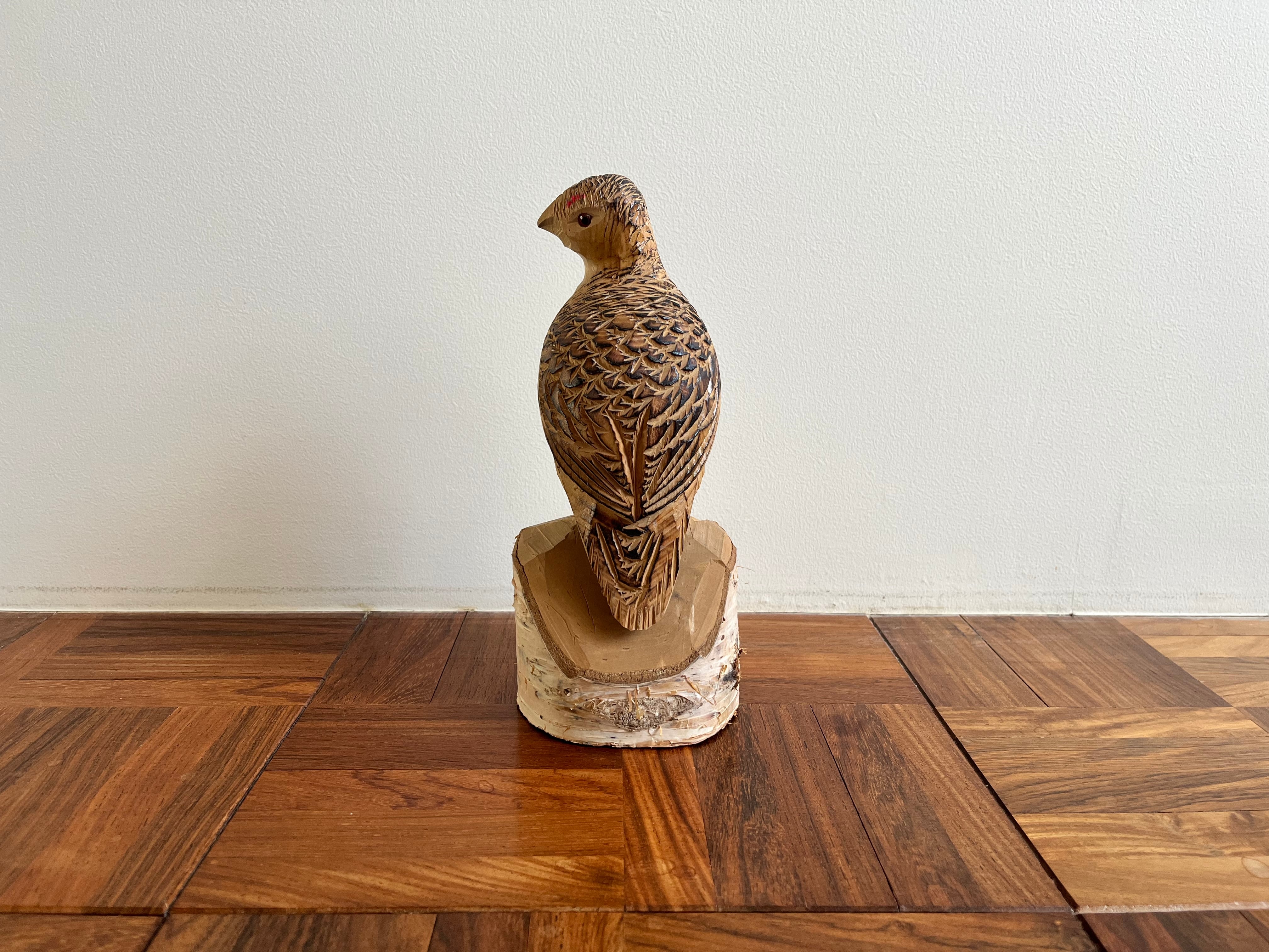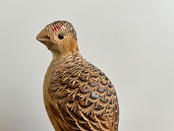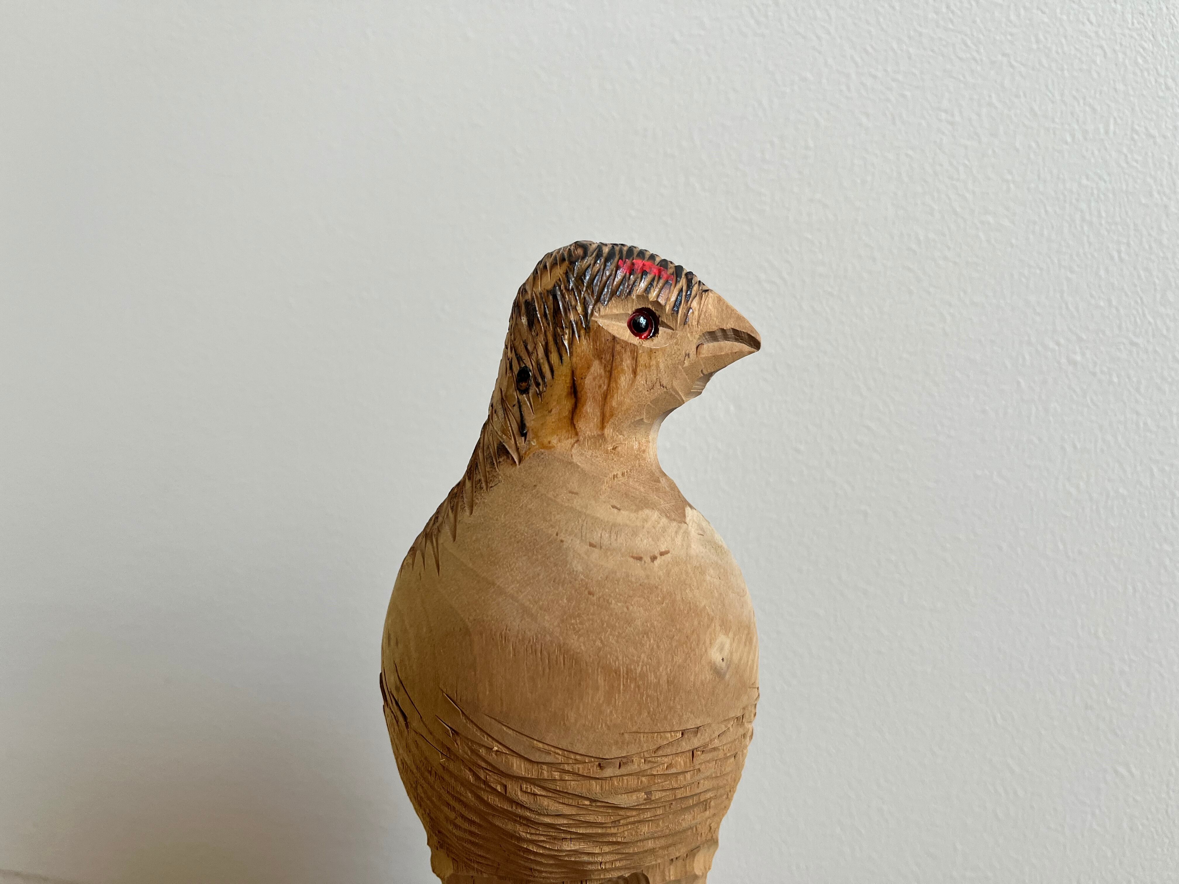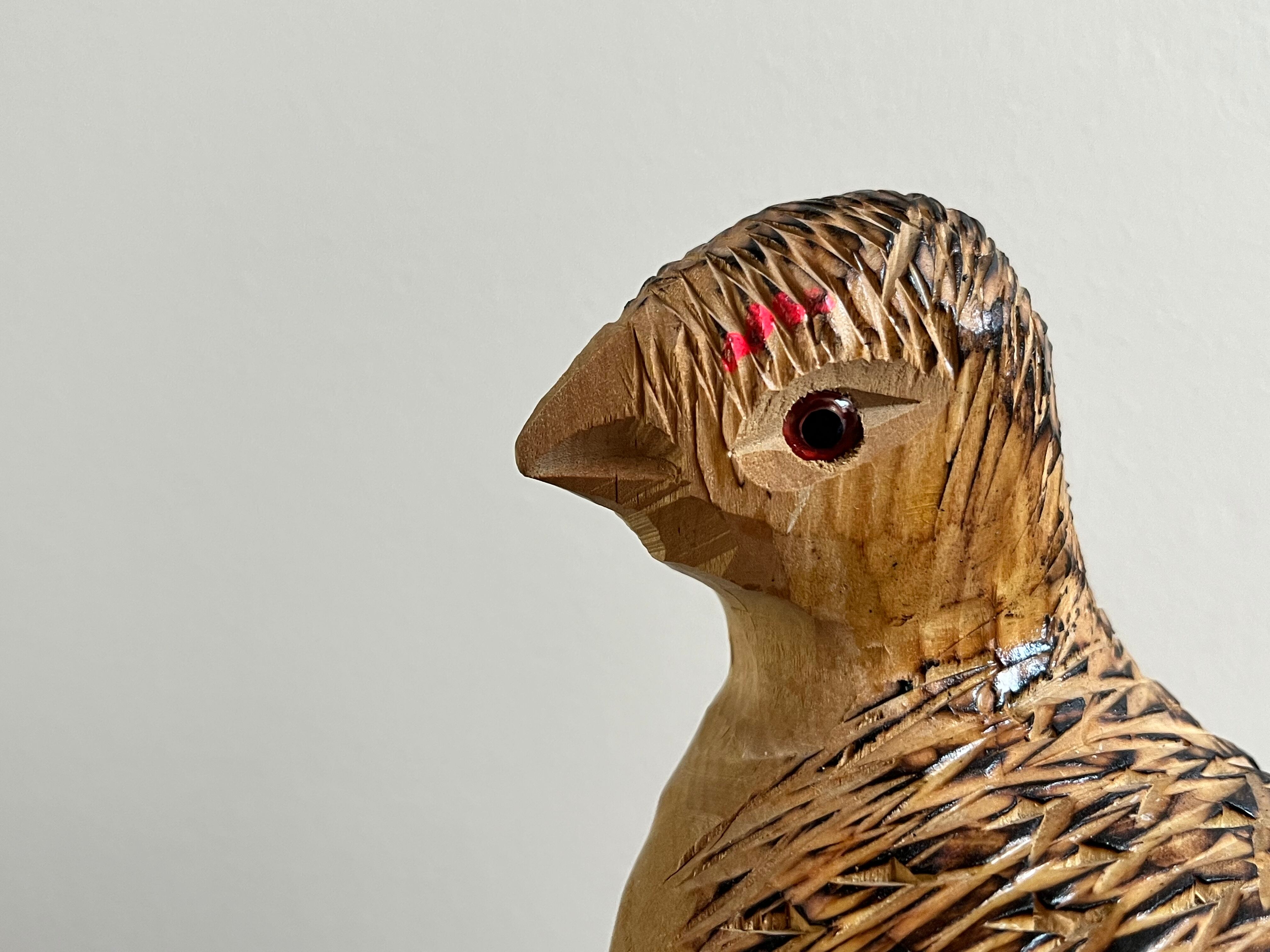 夏毛の茶色い羽根の時期をモチーフとした木彫りの雷鳥。