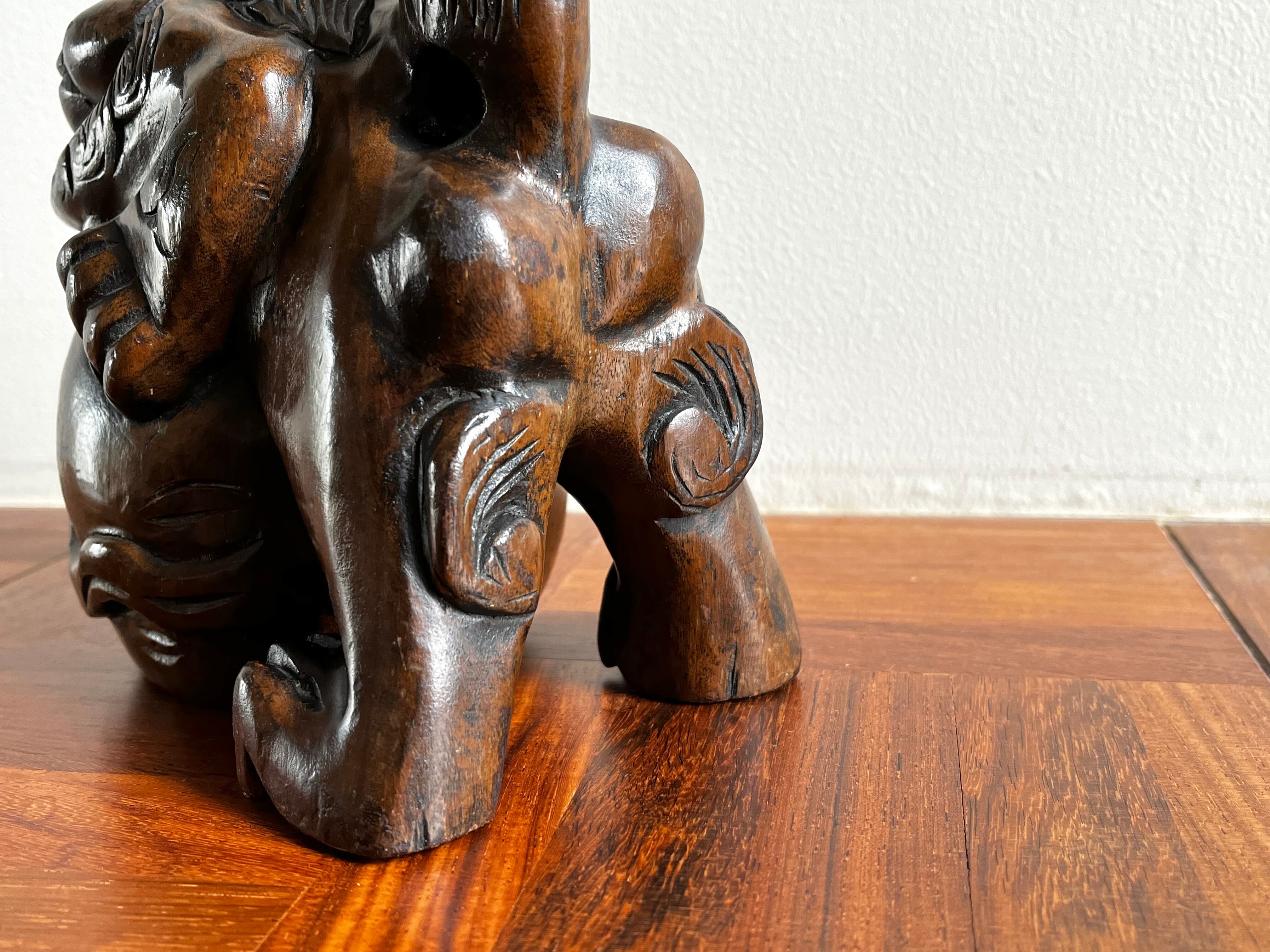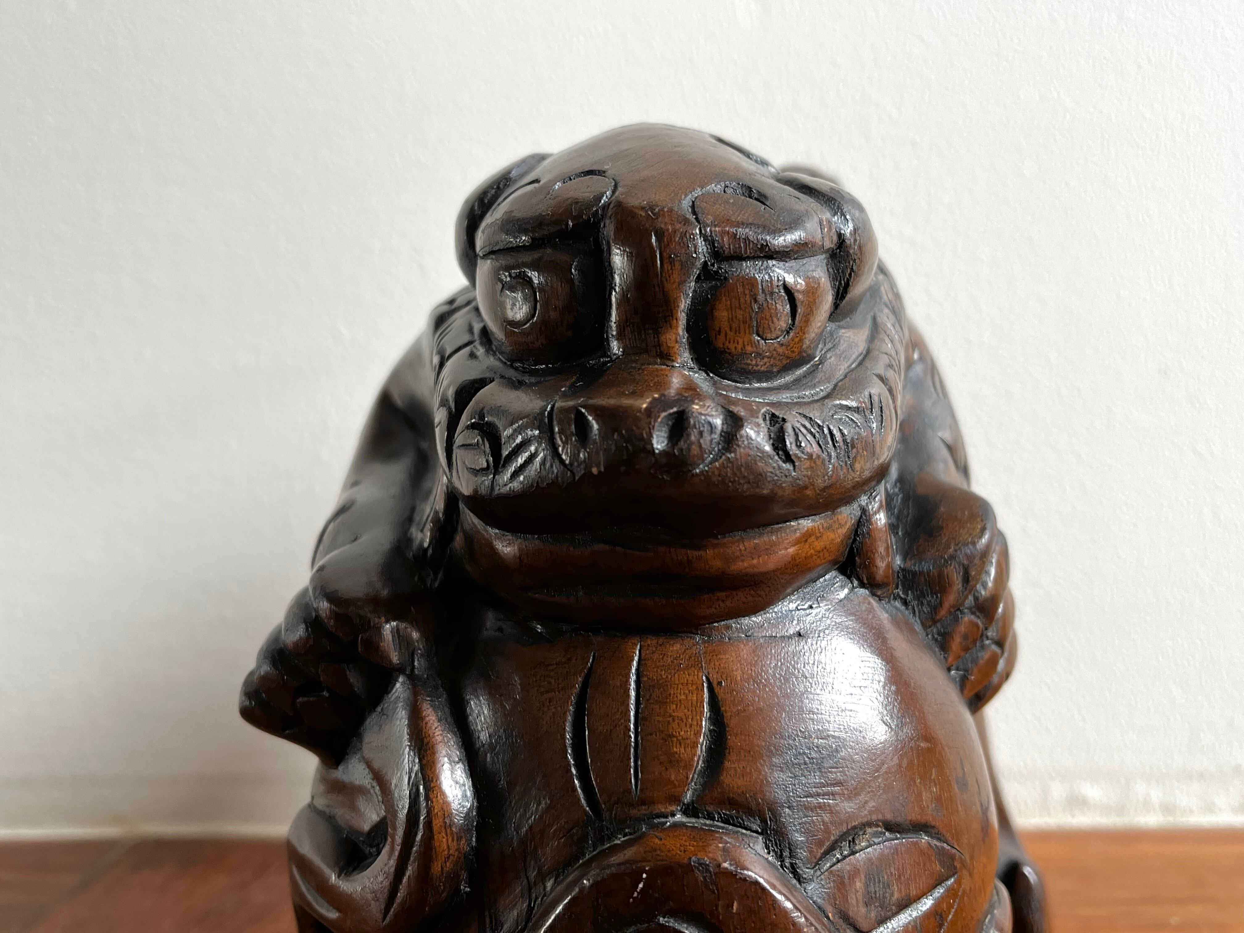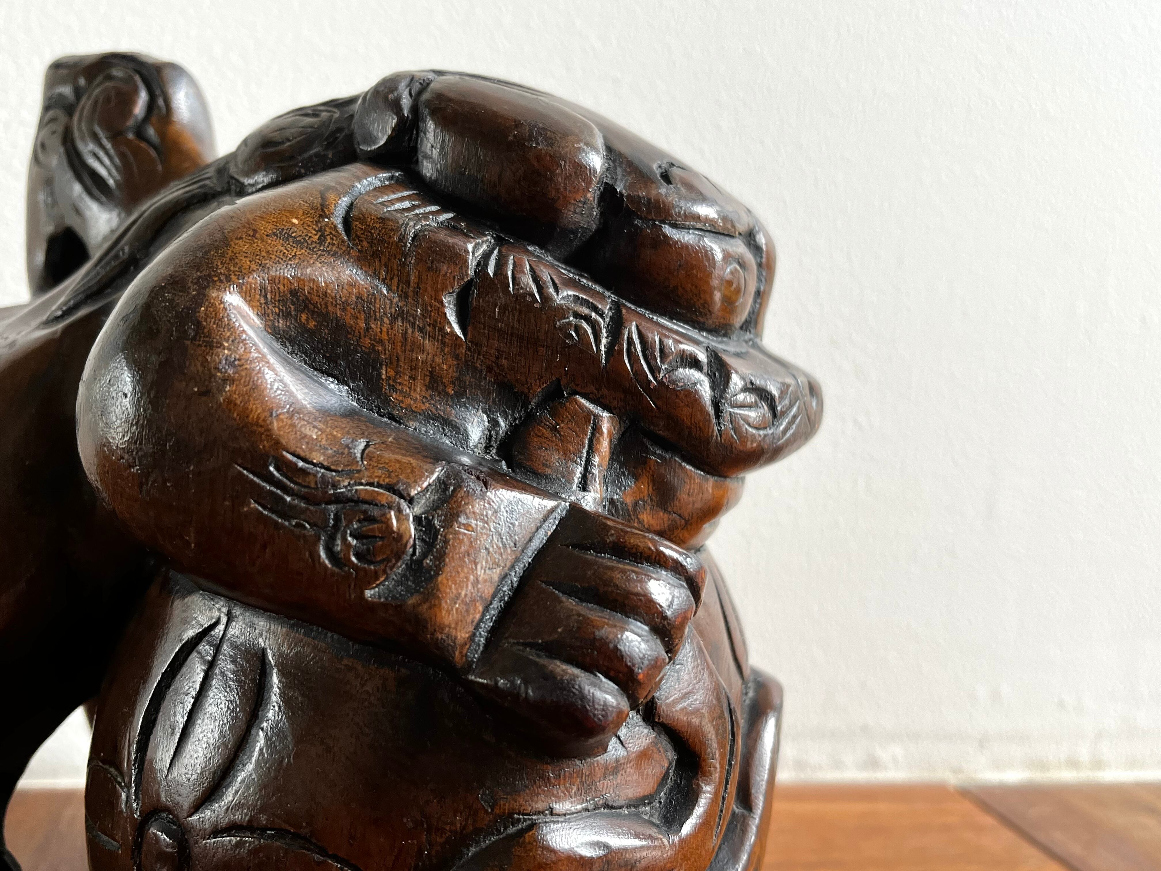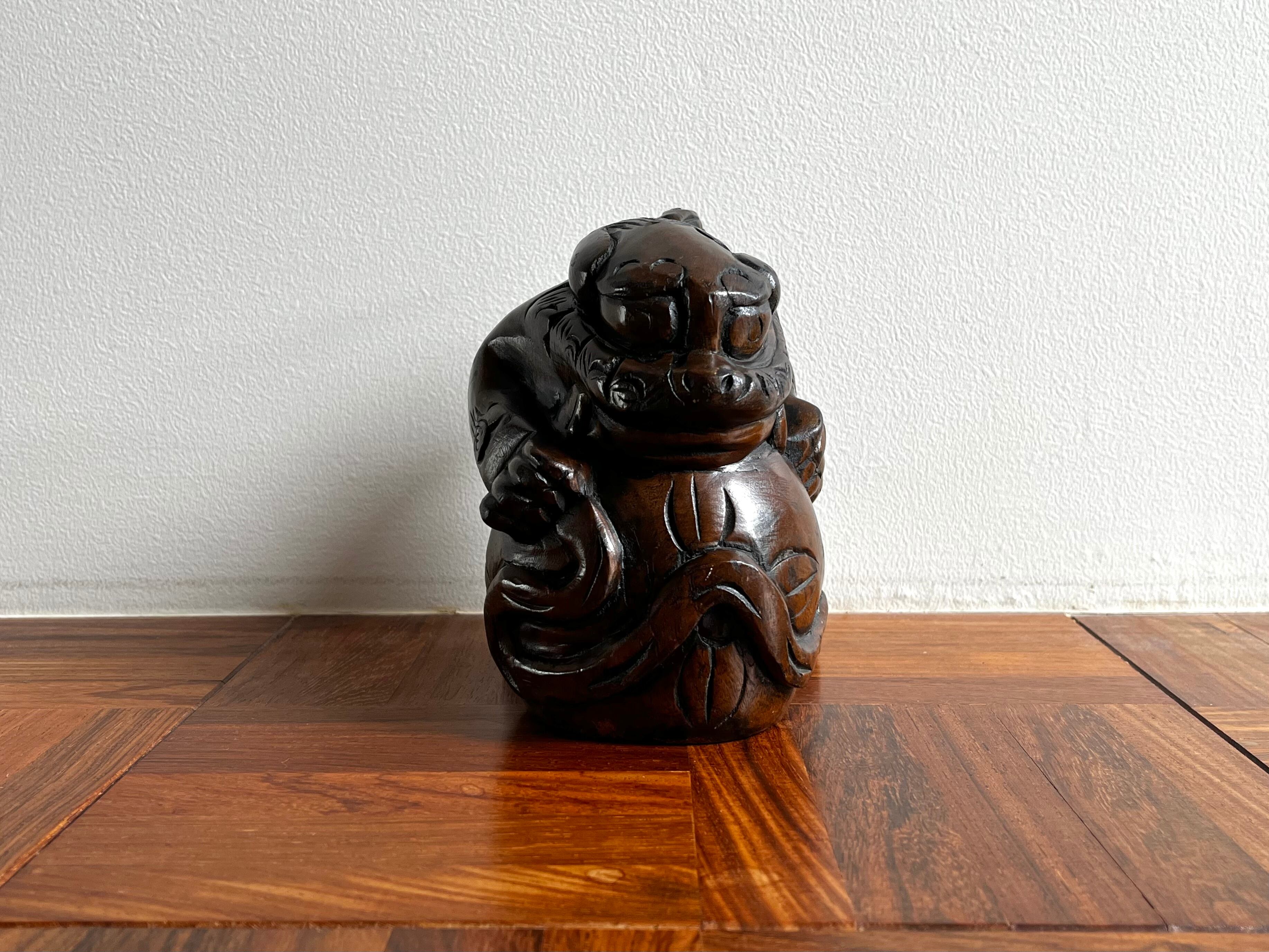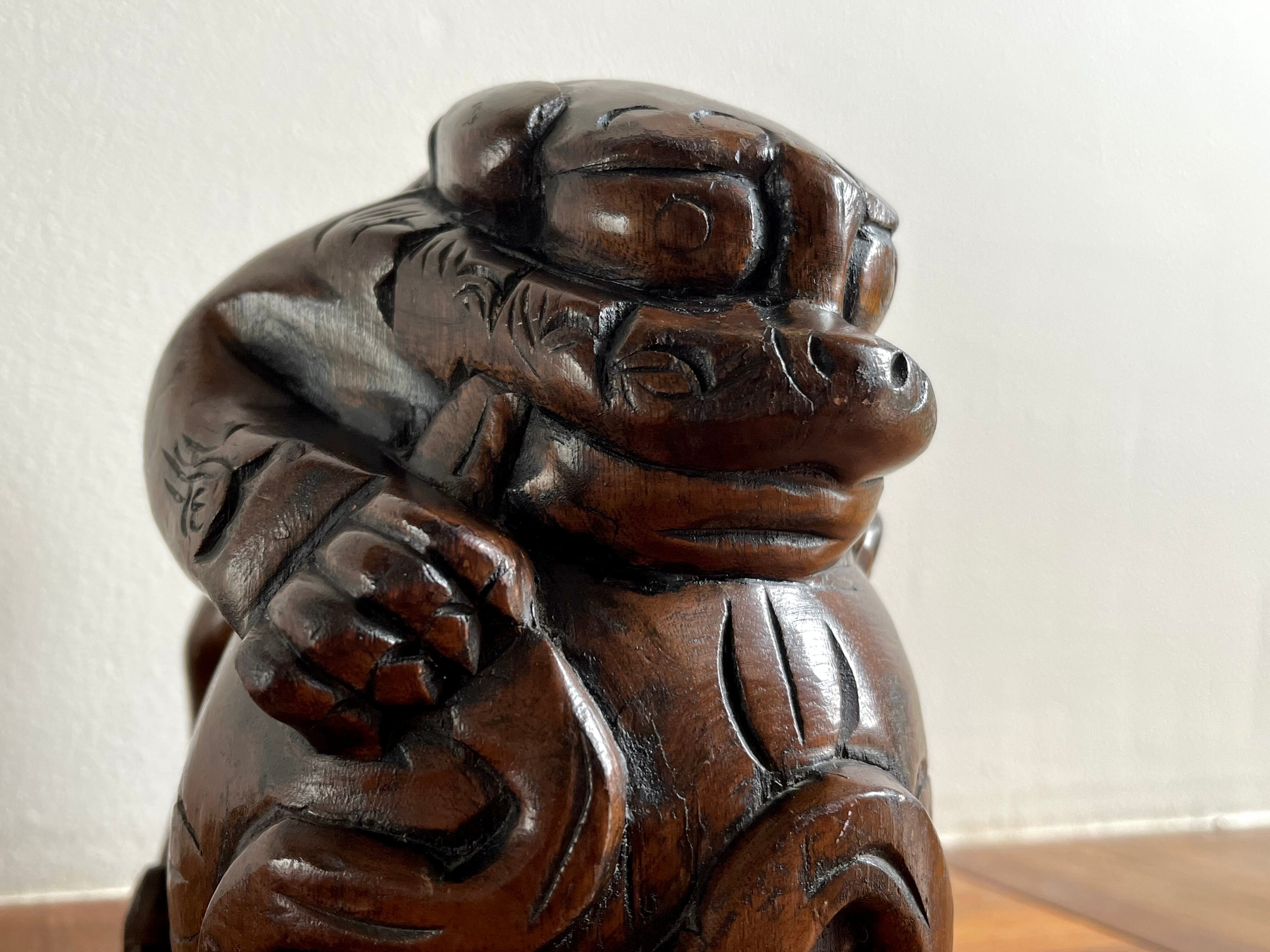 縁起の良い吉祥モチーフである木彫りの玉獅子。