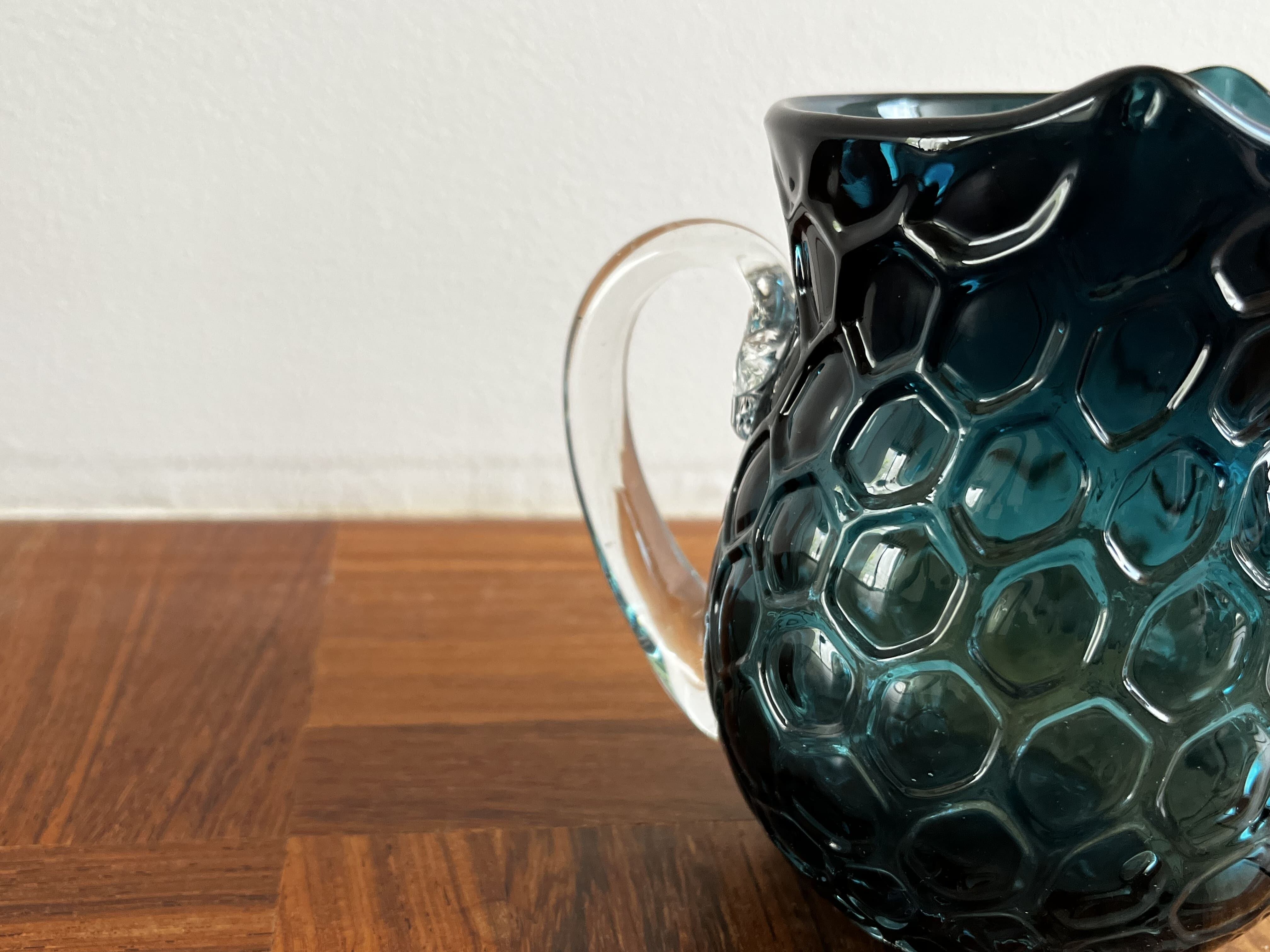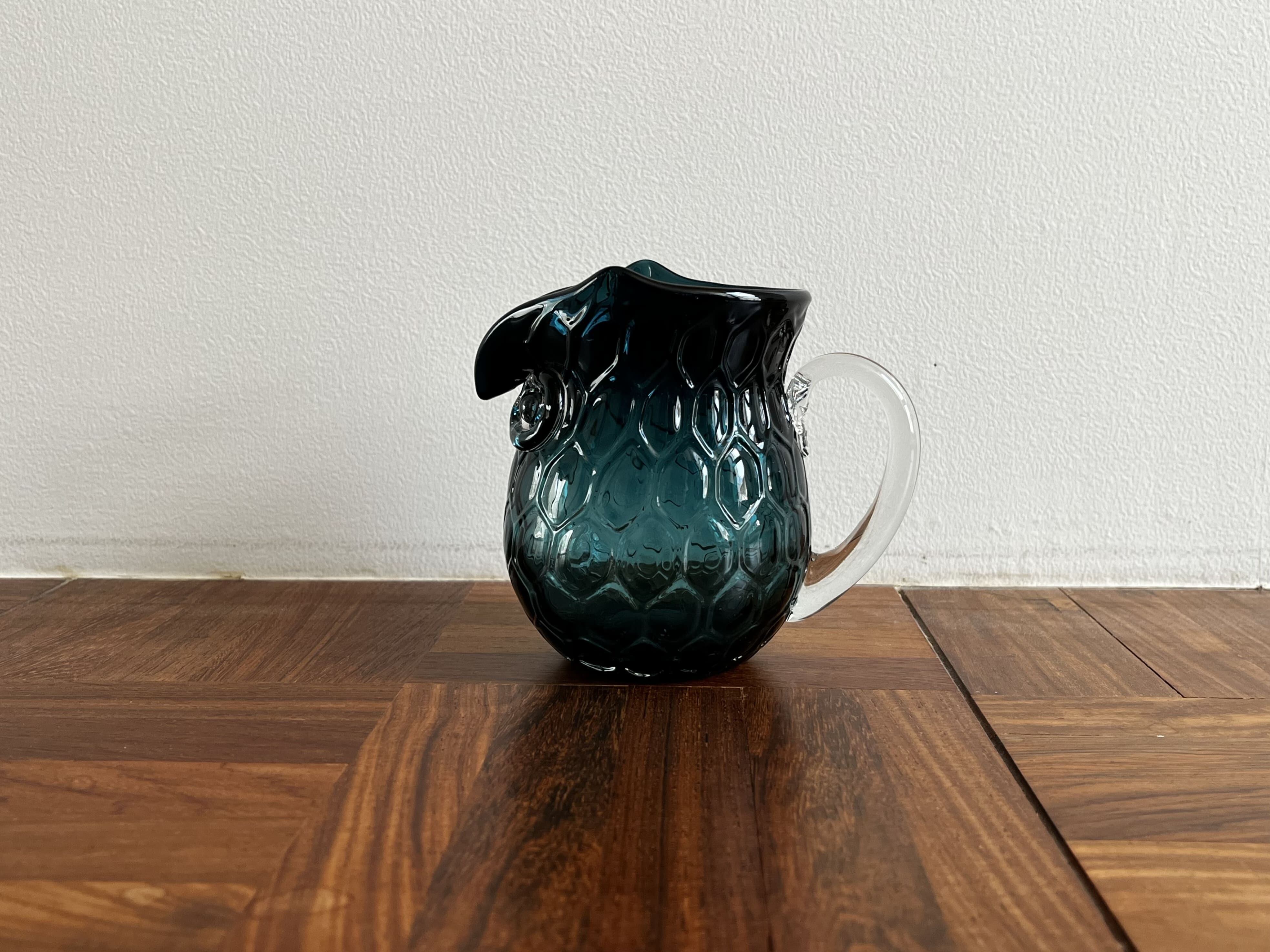 鮮やかなブルーのフクロウ型のピッチャー。