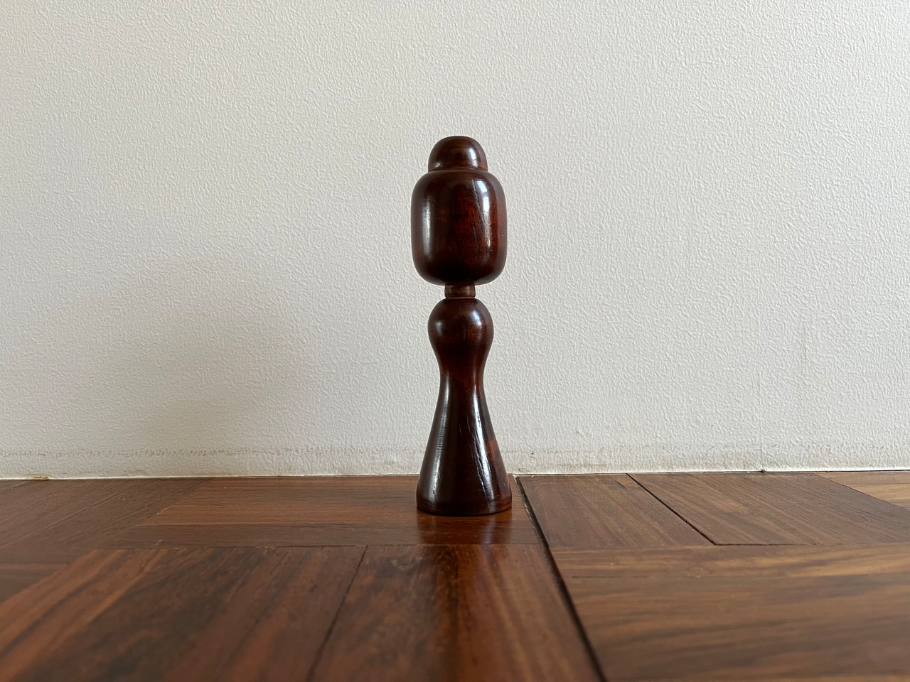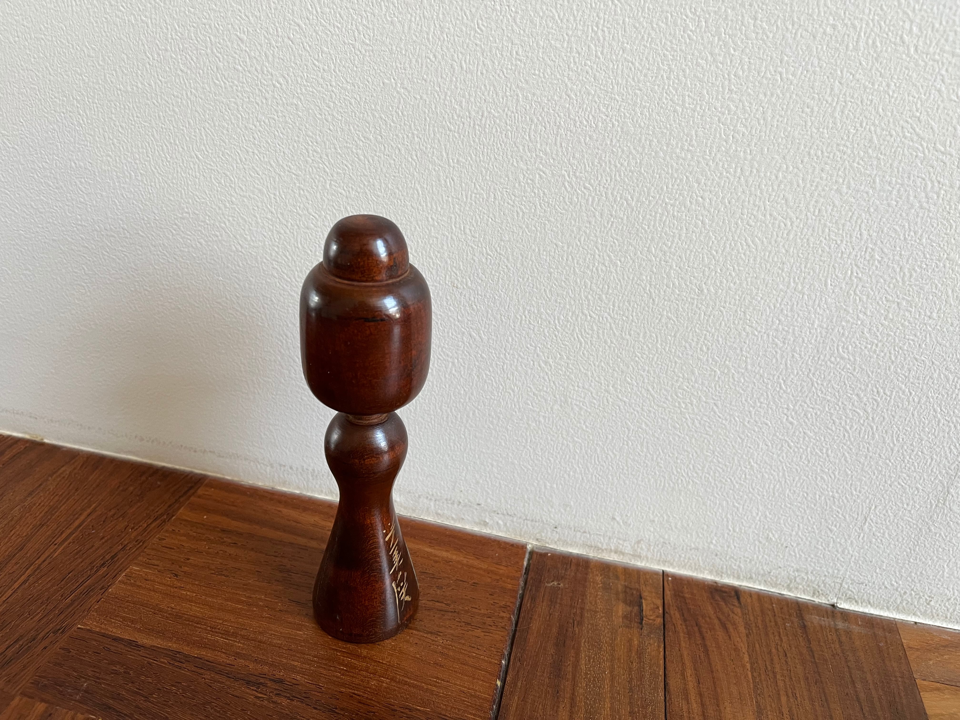雪山を歩き、雪焼けで真っ黒になった姿をイメージしているお顔の無いこけしです。