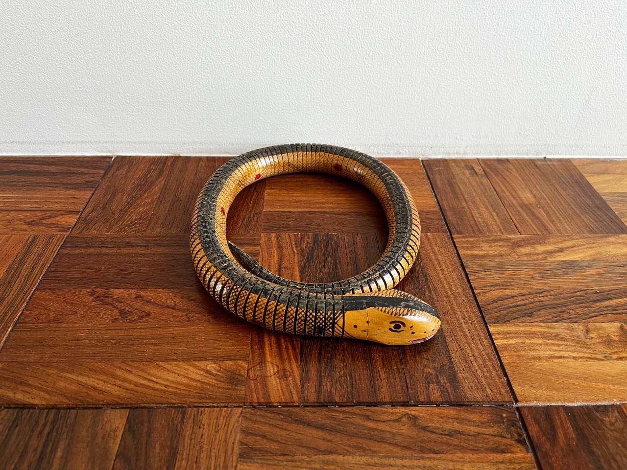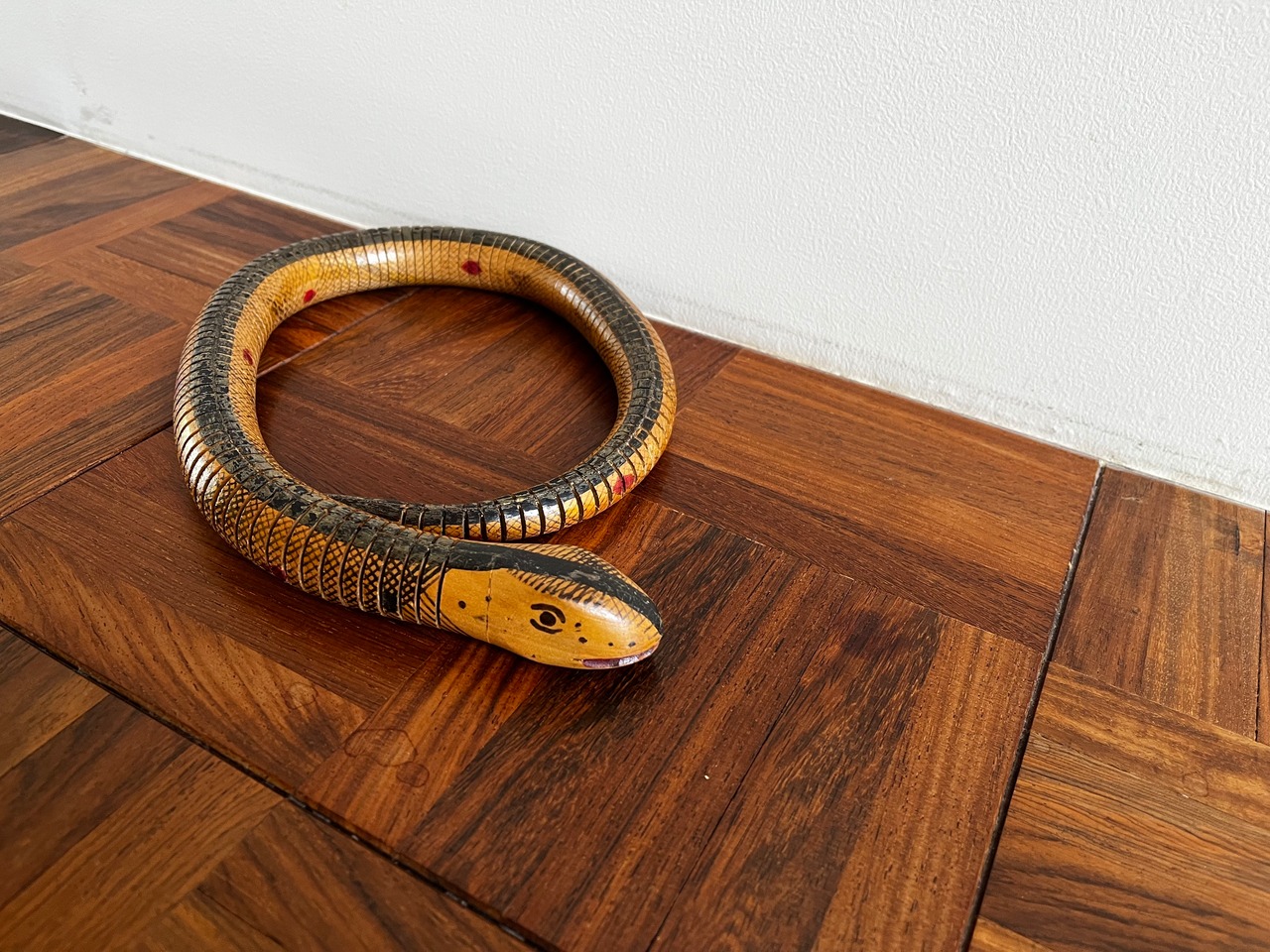 アメリカで購入した木製のヘビのおもちゃ。