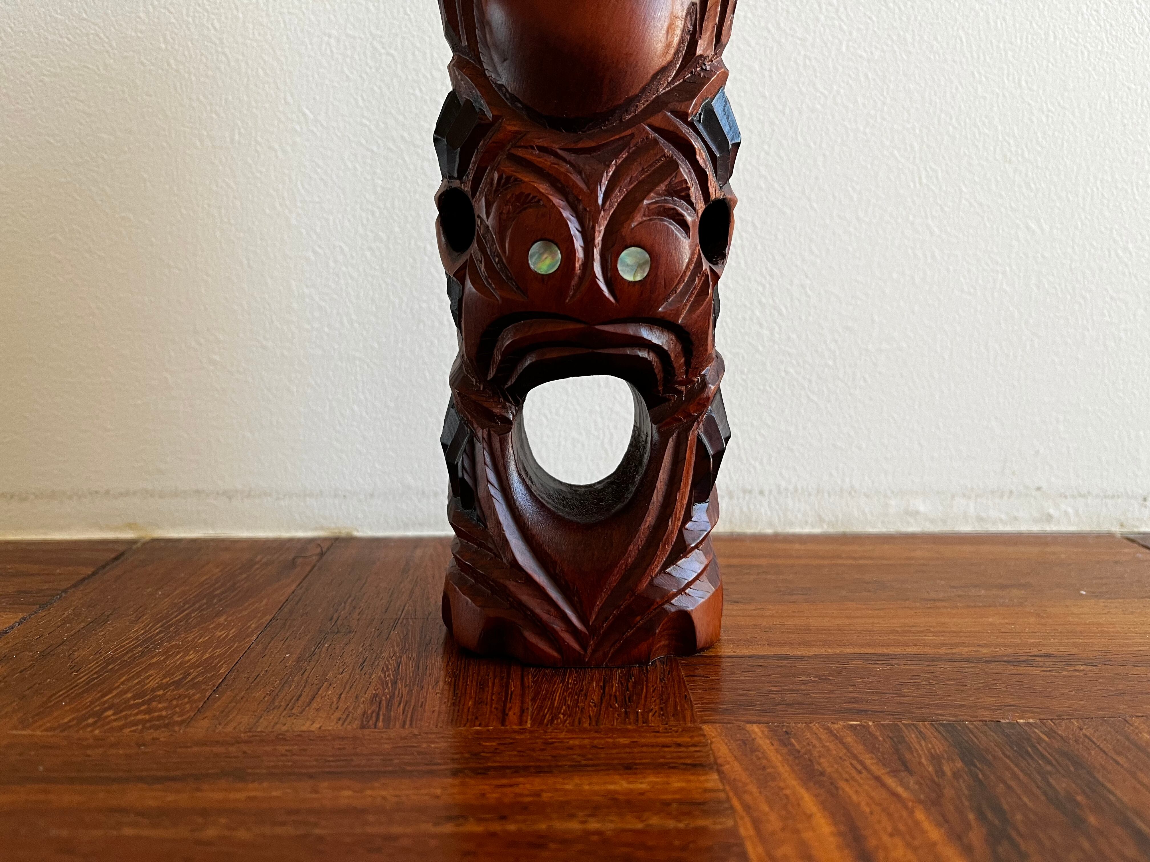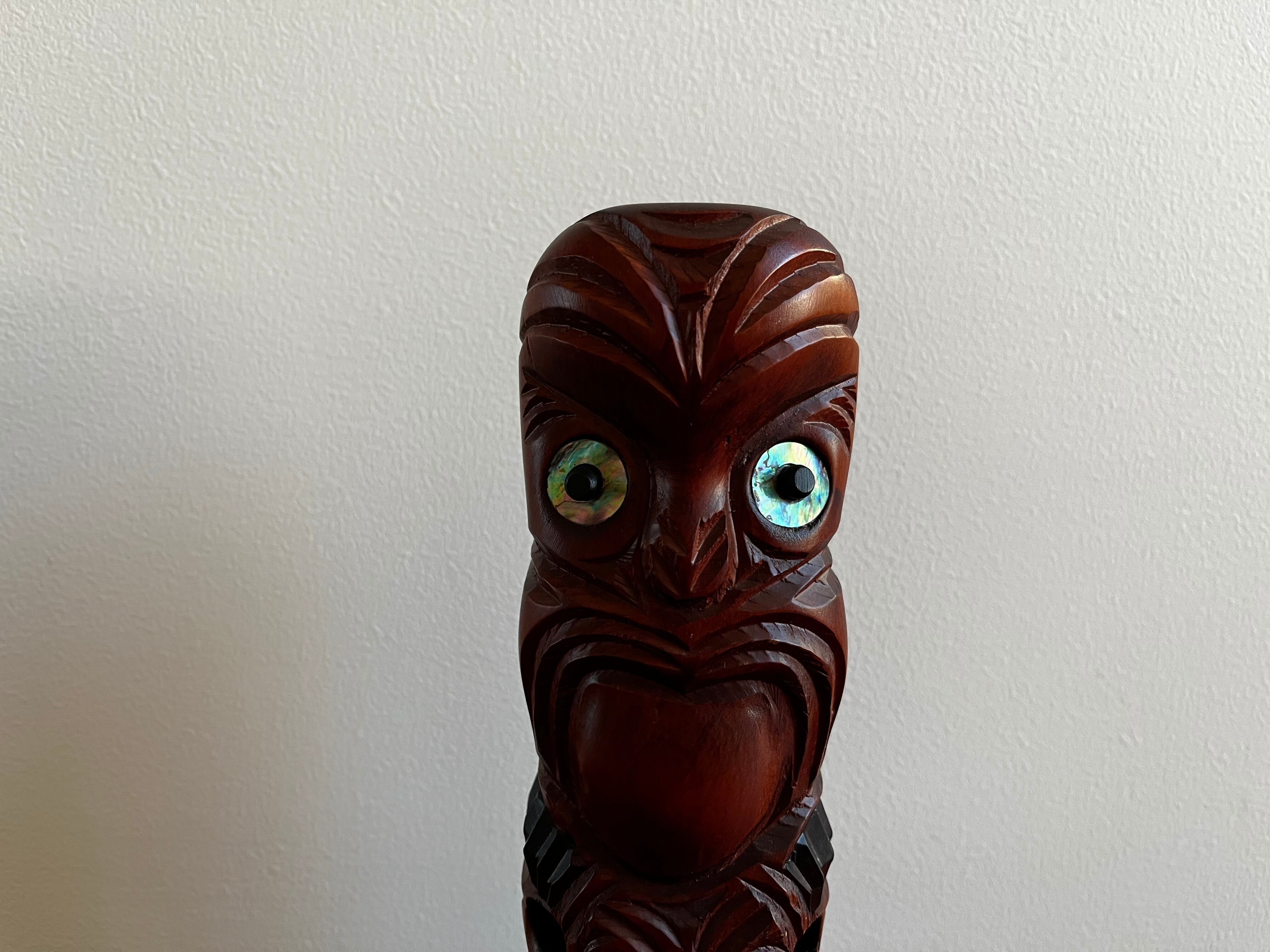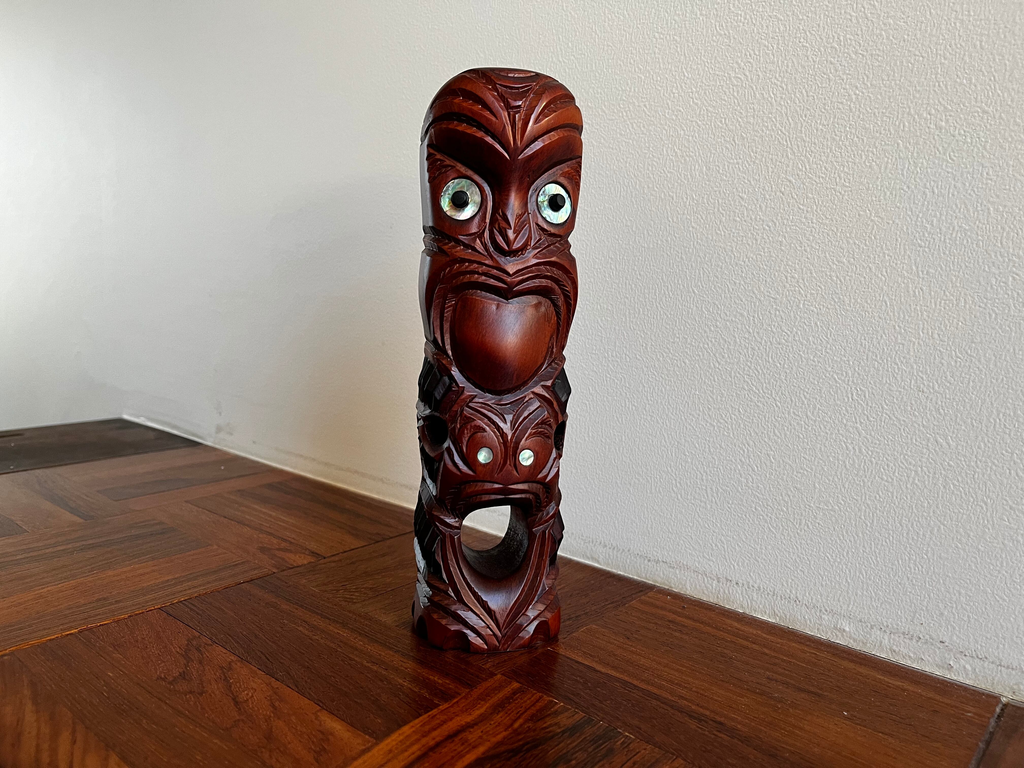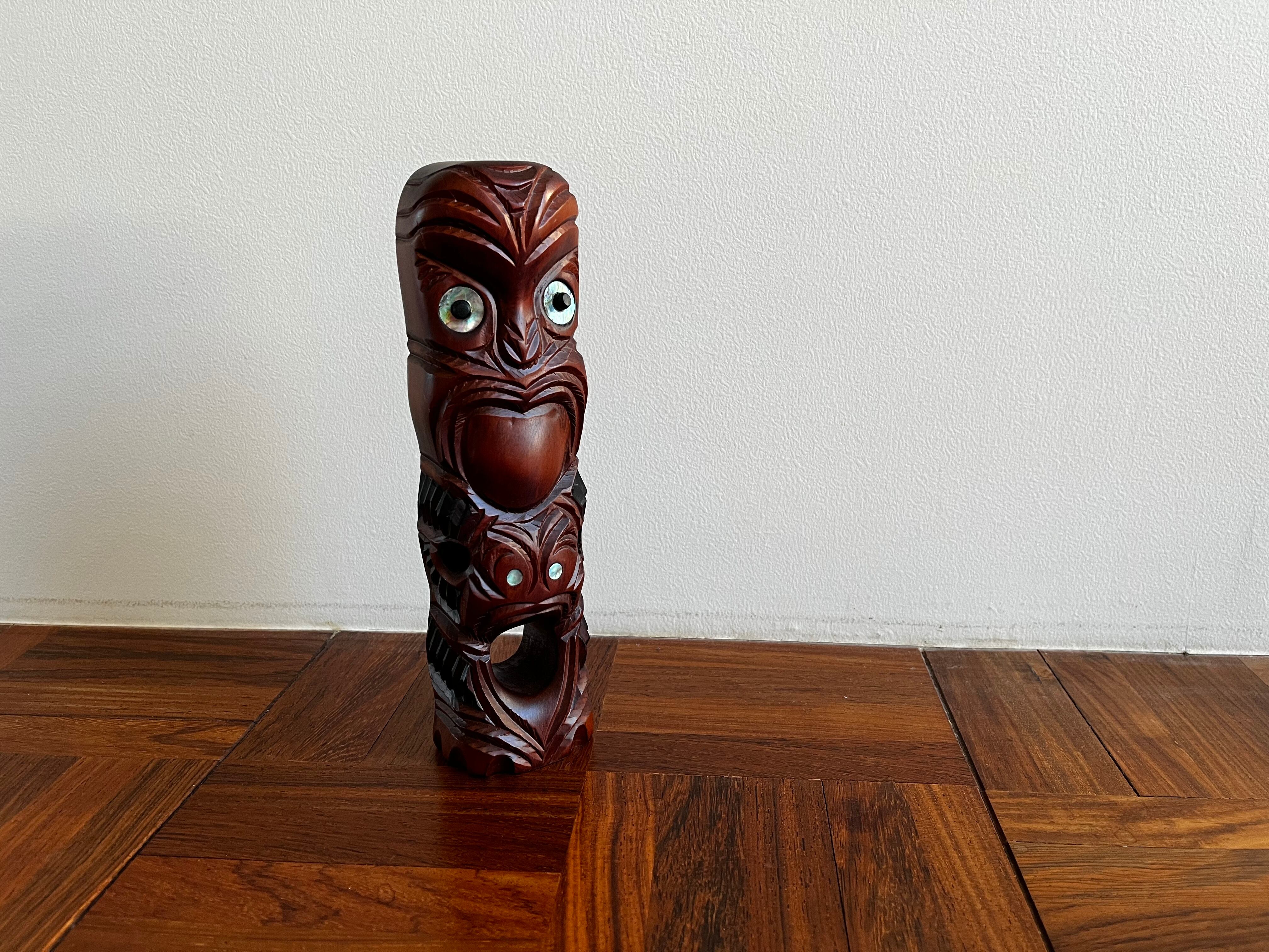 目の部分にはパウア貝で装飾がされています。