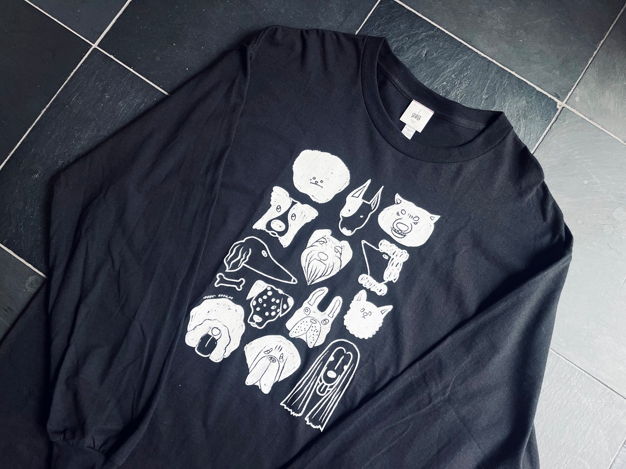 こちらはメーカーから取り寄せたTシャツに国内工場で印刷を施した当店オリジナルの商品です。1枚ずつ手作業で印刷を行っておりますため、印刷位置のゆらぎやインクのノリ具合など、1つひとつの個体差を味わいとしてお楽しみいただけたら何よりです。